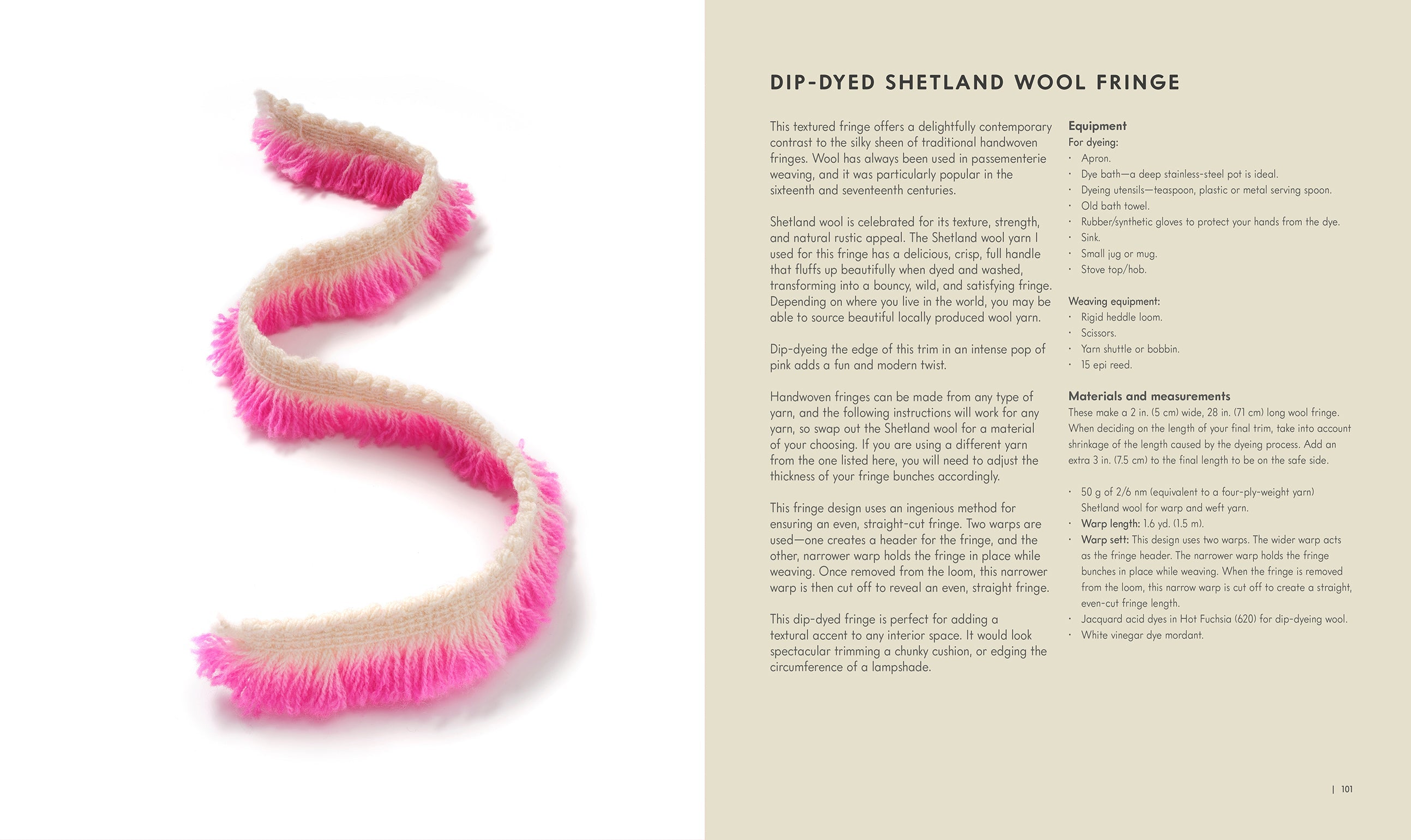 • 11 guided projects for home and wardrobe, from Chanel-style jacket fringe to braided edging for a window blind.