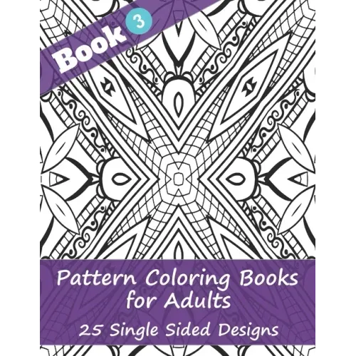 Pattern coloring book for adults contains 25 designs on single sided pages (no image on the back of the page).