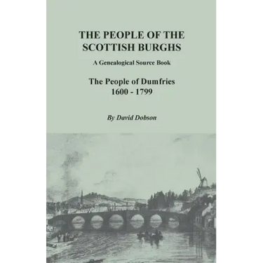 This genealogical source book, part of a series devoted to ancient Scottish burghs, identifies many of the inhabitants of Dumfries of the 17th and 18th centuries and is overwhelmingly based on primary sources. It is designed to provide information that would enhance the basic data of baptisms, marriages, and sometimes deaths found in the Old Parish Registers of the Church of Scotland for this burgh. A range of documentary sources have been located, including testaments, deeds, sasines [property], marriage contracts, bonds, court records, customs references, letter-books, and others, all of which provide a useful insight into the lives of the people of the period. Dr. Dobson identifies each inhabitant of Dumfries by name, occupation, a date, and the source. In many instances he has also dredged up additional facts, such as the name(s) of family members, if/when traveled to the Americas, contestants in civil suits, and so on.