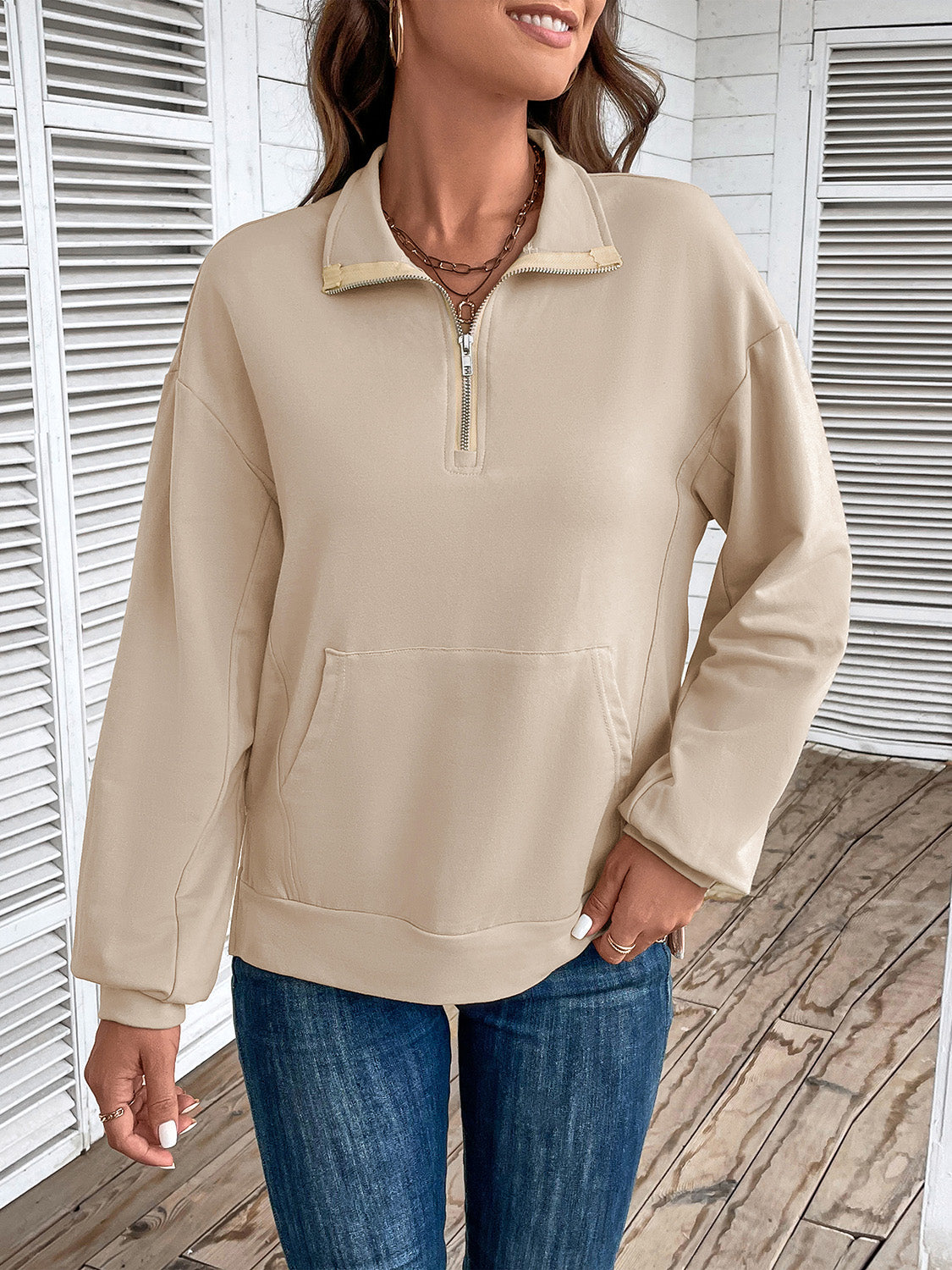 Perfee Half Zip Sweatshirt with Pocket
