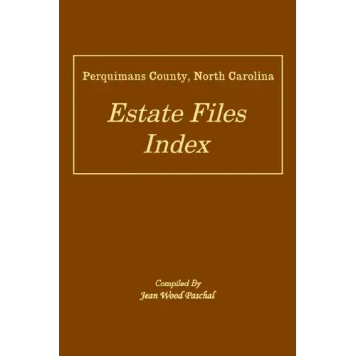 This Perquimans County Index is the second volume in a series of indexes for the loose County Estate Record Files that exist for the inhabitants who died in northeastern North Carolina before 1945. One of the most useful resources for genealogical research on a specific ancestor and their immediate family is the discovery of his or her estate papers. Unfortunately, finding the records for an ancestor is not always easy to accomplish. If a genealogical researcher does not already know where their ancestor was living before his or her death, isolating an ancestor's estate records may be challenging. The county boundaries changed several times during the early years of the Colony's or State's existence. Depending on the approximate time when a death may have occurred, genealogical researchers may need to examine the estate records for several different counties in order to find the one associated with their ancestor. The names in this index are arranged alphabetically by surname using the exact spelling recorded on the original files at the North Carolina State Archives. Also included in this volume is any additional information written on the individual estate file folders as well as a cross index for the estate files that listed multiple names.