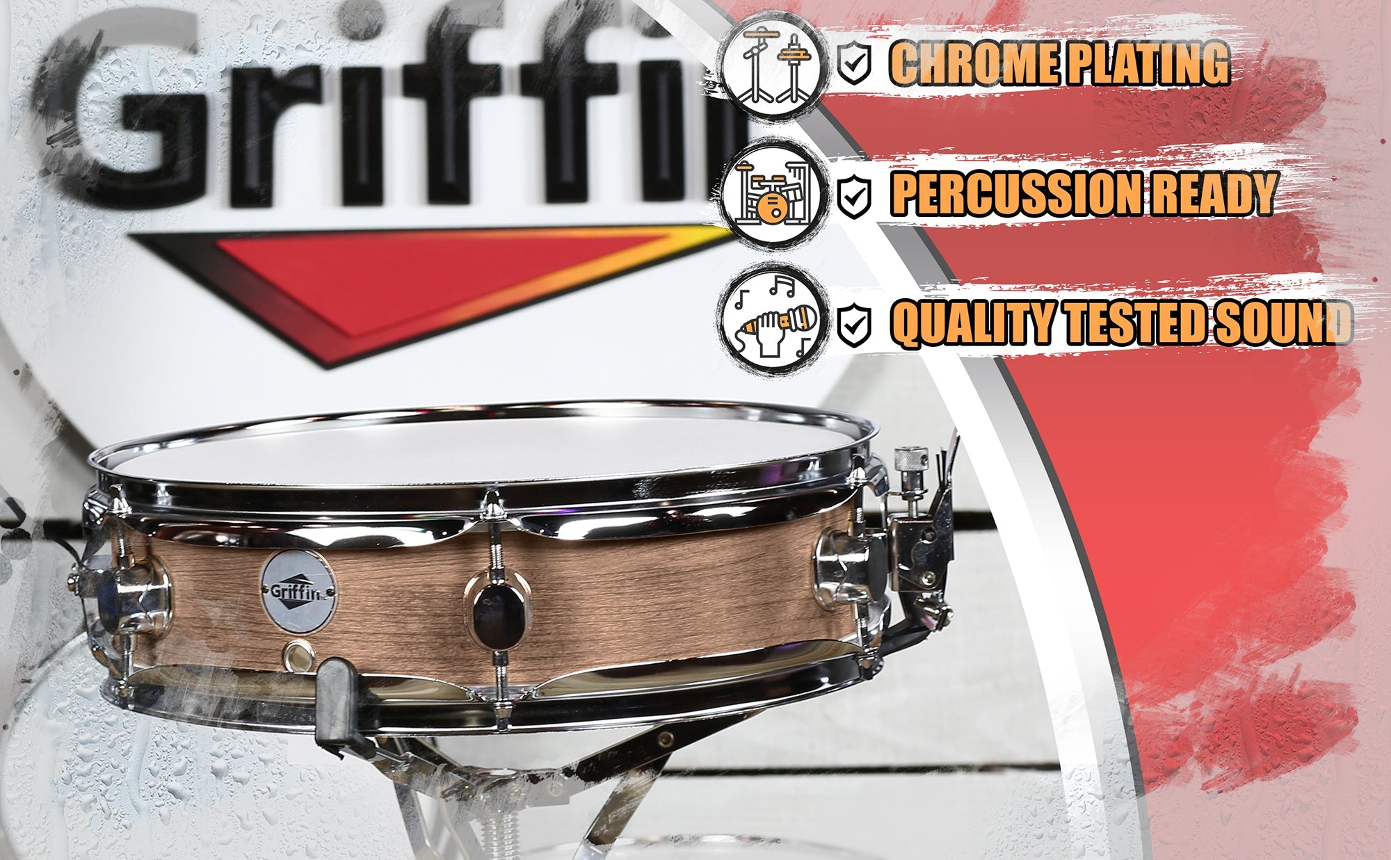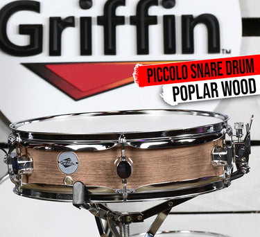 Let Griffin's 13" Oak Wood Piccolo Snare Drum add an unforgettable crisp and distinctive voice to your drum kit with its unique, bright attack and high-pitched yet sensitive sound. This snare drum is perfect for both primary and secondary snare drums, as it will cut through the mix with its tight sound, exceptional projection, and brilliant attack. We even include a drum key with each piccolo so you can get the perfect sound you're looking for. And with its six (6) tuning lugs, you can be sure that you'll get a stable, high-quality sound each time. Whether you're onstage or in the studio, you won't be disappointed with this oak wood finish piccolo snare drum. Get ready to rock and roll with the snappiest sound in town!