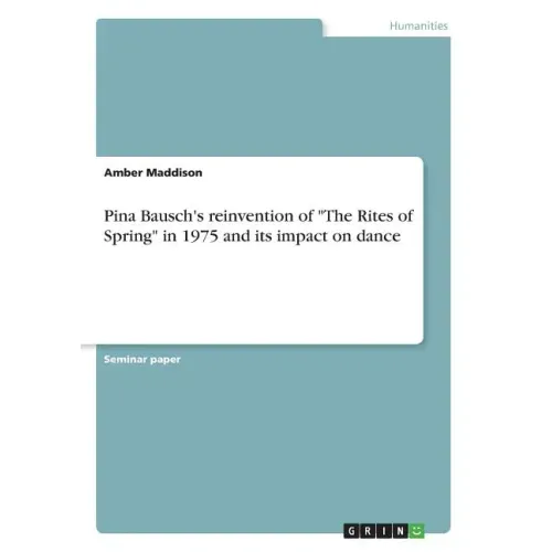 Seminar paper from the year 2016 in the subject Theater Studies, Dance, grade: 2:1, Buckinghamshire New University, course: BA (Hons) Musical Theatre, language: English, abstract: The present paper is an examination of the work of Pina Bausch, choreographer of the ensemble Tanztheater Wuppertal, focusing on the 'masterpiece' (Smith, C 2013) that was "The Rites of Spring" in 1975, a reinvention of an original ballet performed by the Ballet Russe in 1913, choreographed by Vaslav Nijinsky, and composed by Igor Stracinsky. For Bausch movement was to be the secondary focus with a development and denouement of the piece. I will bring attention to how The Rites of Spring tackles the male and female relationship through balletic contemporary choreography, questioning Bausch's development on dance and education today. Drawing upon some of her other pieces such as Kontakthof (1978) and Café Muller (1978), I will explore the methodologies used and whether these methods have influenced other practitioners and if her work is still relevant today.