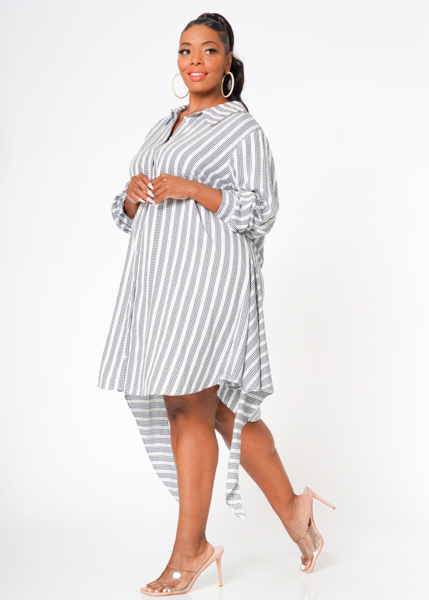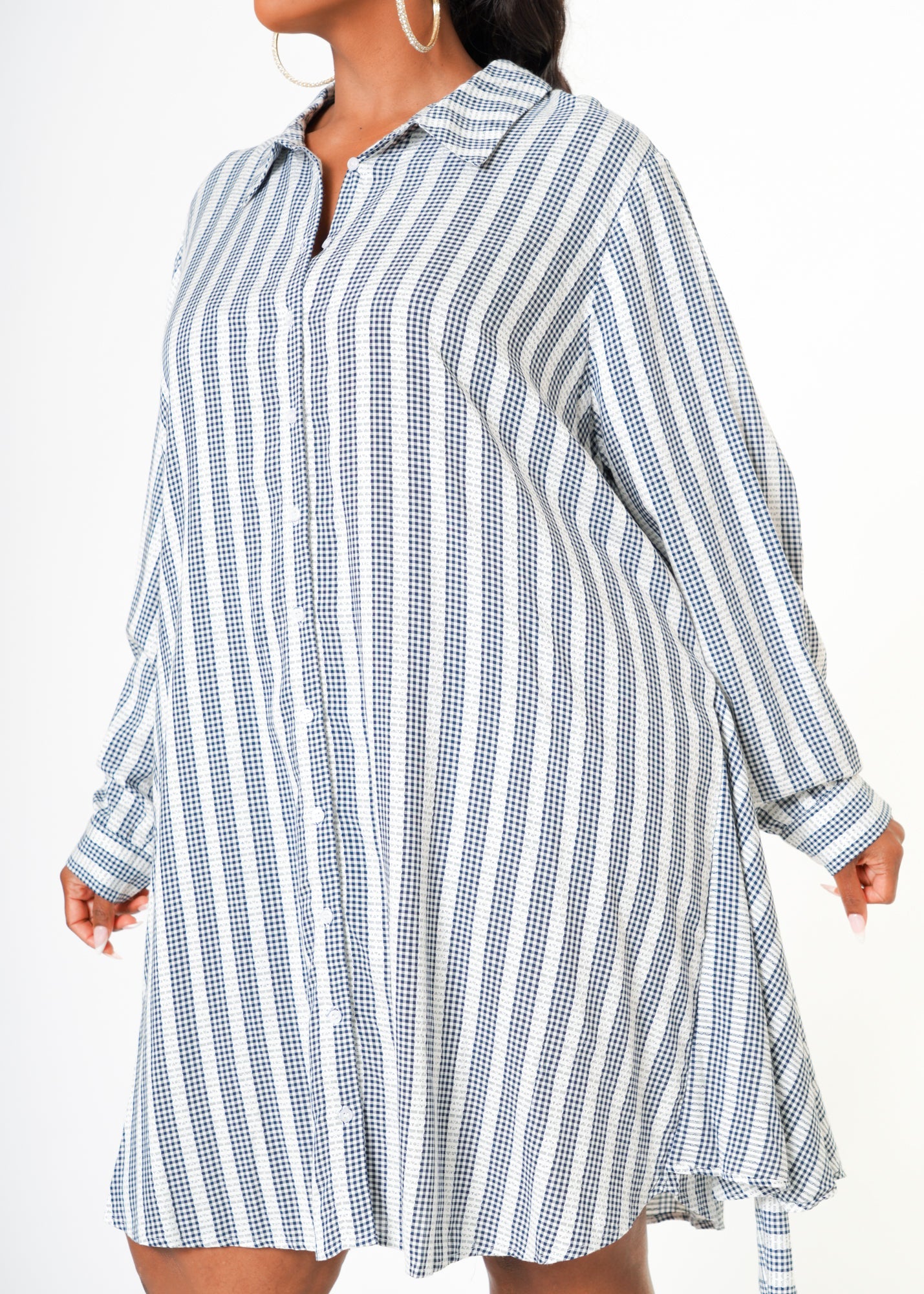 Plus Size Lace Trim Wrapped Shirt Dress in Ditsy Gingham by Shop at Konus