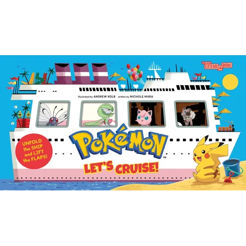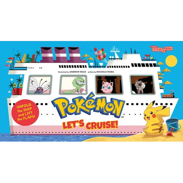 Pokémon: Let's Cruise! is a unique interactive, accordion-fold board book, featuring die-cut windows to peek through and flaps to lift on every page.
