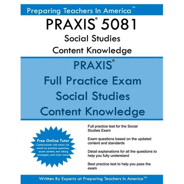 PRAXIS 5081 Social Studies Content Knowledge Practice Exam plus a free online tutoring subscription. Rate the best test prep book, this guide contains updated exam questions based on the recent changes to the PRAXIS 5081 Social Studies Content Knowledge. The PRAXIS 5081 Social Studies Content Knowledge questions are aligned with the updated standards. This guide includes similar to the real PRAXIS 5081 Social Studies Content Knowledge. Included in the guide are detail explanations to each of the practice exam questions.