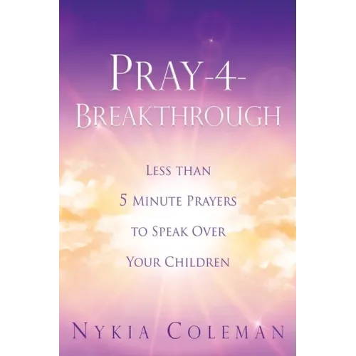 Pray-4-Breakthrough is an inspiring book that includes fifty days of prayer that readers can pray over their children in less than five minutes. Each entry includes a scripture of reflection that readers can add to their spiritual arsenal. The prayers are specific, powerful, and doable for readers to implement in their daily life. Readers can expect to see God move in the lives of their children through unshakeable faith in God's word and matchless power! NyKia Coleman is married to Avery, her husband for over two decades. Together they are parents of three children. Nykia is a minister who has been involved in praying and interceding on behalf of others for over decades. She guest speaks and teaches on the art of prayer at various Christian and Evangelistic conferences. If you would like to get more information or request prayer, please visit our website www.pray4breathrough.com