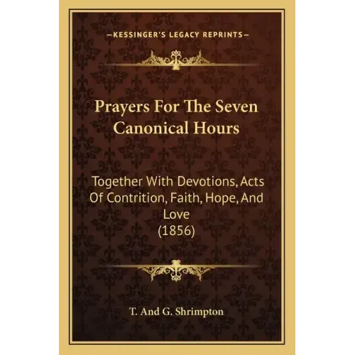 Prayers For The Seven Canonical Hours: Together With Devotions, Acts Of Contrition, Faith, Hope, And Love (1856) - Paperback