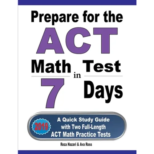 Prepare for the ACT Math Test in 7 Days, which reflects the 2019 and 2020 test guidelines and topics, incorporates the best method and the right strategies to help you hone your math skills, overcome your exam anxiety, and boost your confidence -- and do your best to defeat ACT Math test quickly. This quick study guide contains only the most important and critical math concepts a student will need in order to succeed on the ACT Math test. Math concepts in this book break down the topics, so the material can be quickly grasped. Examples are worked step-by-step to help you learn exactly what to do.