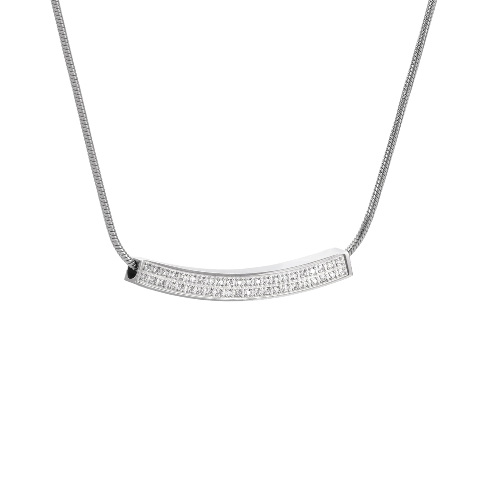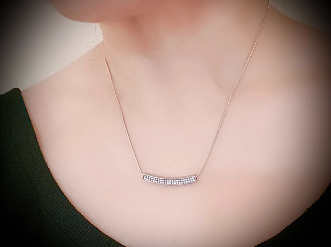 The B.Tiff Pavé Crescent Pendant Necklace embodies elegance with a touch of celestial charm. Featuring a gentle, upward curve reminiscent of a crescent moon, this pendant is crafted from premium surgical stainless steel, offering a sleek and modern silhouette.