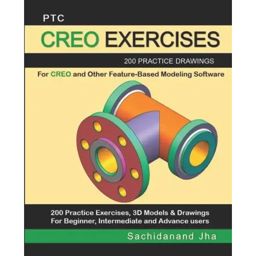 PTC CREO EXERCISESDo you want to learn how to design 2D and 3D models in your favorite Computer Aided Design (CAD) software such as PTC Creo or SolidWorks? Look no further. We have designed 200 CAD exercises that will help you to test your CAD skills.What's included in the PTC CREO EXERCISES book?Whether you are a beginner, intermediate, or an expert, these CAD exercises will challenge you. The book contains 200 3D models and practice drawings or exercises.-Each exercise contains images of the final design and exact measurements needed to create the design.-Each exercise can be designed on any CAD software which you desire. It can be done with AutoCAD, SolidWorks, Inventor, DraftSight, Fusion 360, Solid Edge, Catia, NX and other feature-based CAD modeling software.-It is intended to provide Drafters, Designers and Engineers with enough CAD exercises for practice on PTC Creo.-It includes almost all types of exercises that are necessary to provide, clear, concise and systematic information required on industrial machine part drawings.-Third Angle Projection is intentionally used to familiarize Drafters, Designers and Engineers in Third Angle Projection to meet the expectation of worldwide Engineering drawing print.-This book is for Beginner, Intermediate and Advance CAD users.-Clear and well drafted drawing help easy understanding of the design.-These exercises are from Basics to Advance level.-Each exercises can be assigned and designed separately.-No Exercise is a prerequisite for another. All dimensions are in mm.PrerequisiteTo design & develop models, you should have knowledge of PTC Creo. Student should have knowledge of Orthographic views and projections. Student should have basic knowledge of engineering drawings.