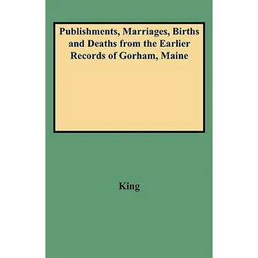 This is a valuable compilation of vital statistics copied from the early records of the town of Gorham, Maine. First published in 1895 in the "Portland Evening Express," the records included here are divided into four sections (Intentions of Marriage, Marriages, Births of Children, and Deaths) and arranged alphabetically by surname. Each entry in the first two sections contains the name of the bride and groom; date of publishment or marriage; race, if nonwhite; and place of residence if other than Gorham. The Births of Children section gives the names of each parent; names and birth dates of children; and, in some instances, places of residence and death dates of children, if known. Because the early records of Gorham listed few deaths, the compiler relied on church records, newspaper notices, and gravestone inscriptions to gather the list of deaths included in this volume. Each entry provides the name of the deceased and date of death and sometimes the name of the deceased's spouse, the place and cause of death, the deceased's age at death, and other biographical notations. Also of interest to genealogists are the introductory notes, which include abstracts from the first town meeting in 1765 and biographical information on Judge William Gorham.