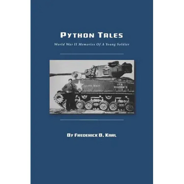 Decorated WWII veteran Frederick B. Karl recounts the thrilling, gritty, and chilling experiences of a young tank commander on the treacherous battlefields of Europe. "Python Tales" is a first-person account of a young man from a small town who left the comfort of his family and friends to take part in the terrible battles raging across Europe in 1942. Like thousands of other Americans, he willingly volunteered to leave his homeland and fight a war thousands of miles away, so that freedom and democracy would not be defeated. Before his 19th birthday, Fred Karl had enlisted in the army, earned a commission as a second lieutenant, trained in tank warfare, and was shipped overseas, where his stamina and personal courage were severely tested. As a young tank commander confronting the enemy at the Battle of the Bulge, he never knew whether or not he would ever return home alive. Mr. Karl's "tales" recall the particular events in Europe during the time he served in the army, specifically the 67th Armored Regiment - better known as Python, its wartime code name. The book does not chronicle the strategy of generals and admirals. Rather, it gets down in the foxholes and the cramped quarters of the Sherman tanks to vividly portray the day-to-day experiences of soldiers in combat. It is about regular people who were essential to the Allied victory. Mr. Karl describes the personal sacrifices of all the brave soldiers who participated in the war effort. "Our worlds were turned upside down," he recalls. "Some were killed, others were wounded, and most went home without physical evidence of having been in a war. But make no mistake: every single one who was called to participate in the shooting war was indelibly marked by that experience."