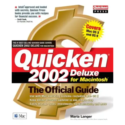 Reach your financial goals by learning to maximize Quicken 2002 Deluxe for Macintosh. Completely up-to-date, this Intuit-endorsed resource provides coverage of the newest product tools, as well as the full array of features that make Quicken the top-selling personal finance software. Loaded with screen shots and worksheets, this thoughtfully-organized guide, which covers Quicken 2002 Deluxe for both Mac OS 9 and Mac OS X, will help you find the information you need quickly and easily. Manage your spending, savings, budgeting, banking, and more. Save time and money, plan financial goals, and organize and track investments with this official guide to this powerful time- and money-saving software.