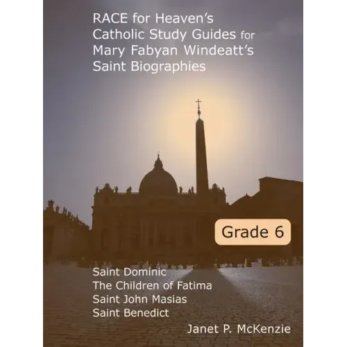 RACE for Heaven study guides use Mary Fabyan Windeatt's saint biographies to teach the Catholic faith to all members of your family. Written with a family's various learning levels in mind, the RACE study guides succeed as stand-alone unit studies or as curriculum supplements. Thirty to sixty minutes per day will allow your family to experience the spirituality and holy habits of the saints while spending quality read-aloud time with spiritual living books. Use these study guides to increase critical thinking and reading comprehension skills, and to incorporate history and geography into your religious study. Participate in lively family discussions on important faith topics and improve your family's knowledge of Catholic doctrine and the Bible. Research and writing projects are suggested based upon secular and Catholic historical events and characters. In addition to the Windeatt saint biographies, additional required books include a Bible and a Catholic catechism. This resource provides a comprehensive guide to the following Mary Fabyan Windeatt's biographies: St. Dominic, The Children of Fatima, St. John Masias, and St. Benedict.
