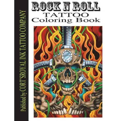 Rock and Roll Tattoo Coloring Book. This 8.5"x11" book is filled with skulls, day of the dead, tigers, knives and tattoo motif drawings all done on one side of the page only so you can frame and hang. There is almost 50 full page designs. This is from Internationally Published, Award winning New York based Tattoo artist Cort Bengtson Of Cort's Royal Ink Tattoo Company and Royal Flash. All of this art work was drawn between 2010-2017 in my spare time. The images in this book are great for beginners as it will give them guidance and reference for what great designs look like and great if you are a professional who wants this book for the stencils. Do just one design and triple your money So whether you just like coloring in tattoo artwork or you or someone you know is an aspiring tattoo artist. There is something everyone can learn from and enjoy.