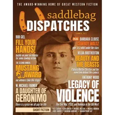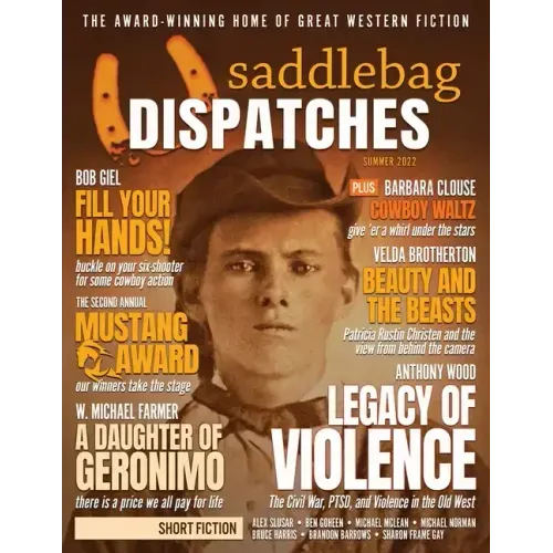 Welcome to Saddlebag Dispatches, the Award-Winning Home of Great Western Fiction. We're hitting the trail this summer with our most diverse issue yet! Anthony Wood leads off this particular wagon train with his thought-provoking cover feature "Legacy of Violence: The Civil War, Post-Traumatic Stress, and Violence on the Western Frontier." Bob Giel joins the fray with "The Shootists," covering the ins and outs of Cowboy Action Shooting, followed by Velda Brotherton's spotlight on equestrian photographer and truck driver Patricia Rustin Christen in "Long and Winding Road", and P.A. O'Neil's mud-caked look at the history of the famed Ellensburg Rodeo, "Northwest Passage." We've got tons of fiction to entertain you on the journey, too, with great new short stories from Sharon Frame Gay, W. Michael Farmer, Michael McLean, Alex Slusar, Ben Goheen, and Michael Norman, along with the winner and runner-up of our 2022 Annual Mustang Award for Flash Fiction. Prepare for some laughs from George "Clay" Mitchell and Dylan Hale with the debut their new cartoon, "The Punny Express," and don't forget your reading glasses, because Doug Osgood has thrown in his lasso with his new regular book-review column, "The Book Wagon." We've also got Cowboy Poetry from award-winner Marleen Bussma, and Barbara Clouse, as well as entries from regular columnists Terry Alexander, Paul Bishop, Regina McLemore, Dr. Michael Lee, and John T. Biggs. So pull up a log, pour yourself a cup of joe from the camp pot, and enjoy our newest issue.