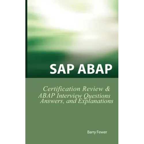 The Ultimate Reference & Learning Guide for SAP ABAP Consultants SAP ABAP Interview Questions, Answers, and Explanations It' s clear that SAP ABAP is one of the most important areas in SAP. Mastering technical details is difficult. SAP ABAP Interview Questions, Answers, and Explanations guides you through your learning process. From helping you to assess your ABAP skills to evaluating candidates for a job, SAP ABAP Certification and Interview book will help you understand what you really need to know. The book is organized around eight areas of SAP ABAP: Databases, Lists, Tables, Dialog, ABAP Objects, Basis, and others. Each question includes everything you need to know to master the interview or properly evaluate a candidate. More than just a rehash of SAP documentation and sales presentations, each question is based on project knowledge and experience gained on successful high-profile SAP implementations. Key certification and interview topics include, Database Updates and Changing the Standard, List Processing, Internal Tables, and ALV Grid Control, Dialog Programming, ABAP Objects, Data Transfer, Basis Administration, ABAP Development reference updated for 2006 Everything an ABAP resource needs to know before an interview