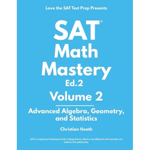Created and written by Christian Heath, the founder of Love the SAT Test Prep - one of the top SAT and ACT prep tutors in the world, a perfect-scorer on the SAT test, and an internationally-recognized expert SAT prep instructor. Based on 10 years of full-time specialized SAT prep experience and his work with over 1500 high school students. Only from Love the SAT Test Prep Be sure to order both Volume 1 and Volume 2 together. These 38 SAT Math lessons were too big to print in a single book