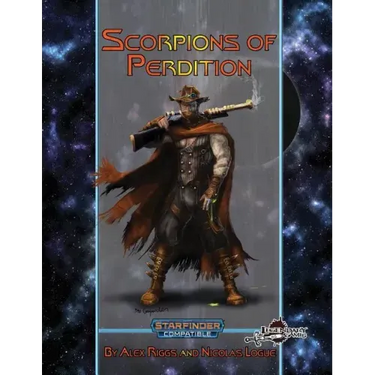 What's Down in Those Mines; It Ain't of This World A strange craft fallen from the stars, long the home of a tribe of monstrous mutants worshiping the long-forgotten technology in its ruined bowels, has birthed a new and fearsome scourge. Alien prisoners once bound in its holds have escaped from the derelict, bringing terror and death to a poor mining town while a lone android marshal wanders the wasteland seeking these escaped interplanetary convicts. The heroes find themselves stalked in turn by an unearthly abomination in a twisting catacomb of mines and must dare the precarious ruins of the dangling spacecraft embedded in the cliffs if they are to stop the conquering forerunners of an ancient empire buried centuries ago from rising again to pick up where they left off... with world domination Scorpions of Perdition is a 40-page Starfinder Roleplaying Game adventure for 8th to 9th-level characters that blends pulp action, gritty western, and tense horror with sci-fi for an exciting adventure on the edge of the barren lands on the savage frontier of your Starfinder campaign Grab this fantastic adventure today and Make Your Game Legendary
