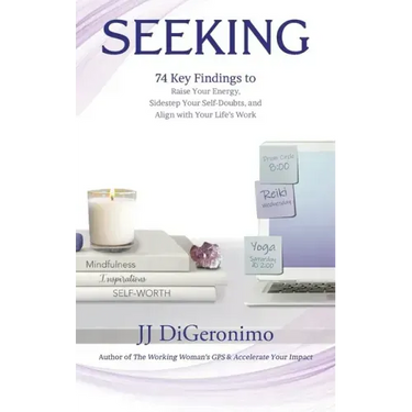JJ DiGeronimo knows these feelings all too well as an accomplished businesswoman who felt an internal tug for something more. Off the side of her desk, JJ found herself seeking to stay energized as she chased external metrics with reappearing whispers from within.If you are asking yourself, "What is this all for?", or "Now what?", or "Is there more?", then you are ready to embark on your next step of self-discovery.After five years of researching, attending, and practicing, JJ is excited to share the most important key findings from her journey. In her new book, Seeking: 74 Key Findings to Raise Your Energy, Sidestep Your Self-doubts, and Align with Your Life's Work, JJ unpacks the strategies that helped her infuse more purpose and meaning into her work and life. With short chapters, relevant stories, and specific questions, these pages create a space where you too can evaluate your choices, dig through your stories, embrace your gifts, and elevate your energy.It is no mistake you found this book, as your seeking has brought you to the frequency within these pages.Let's explore ways to illuminate your path ahead, from the inside out!