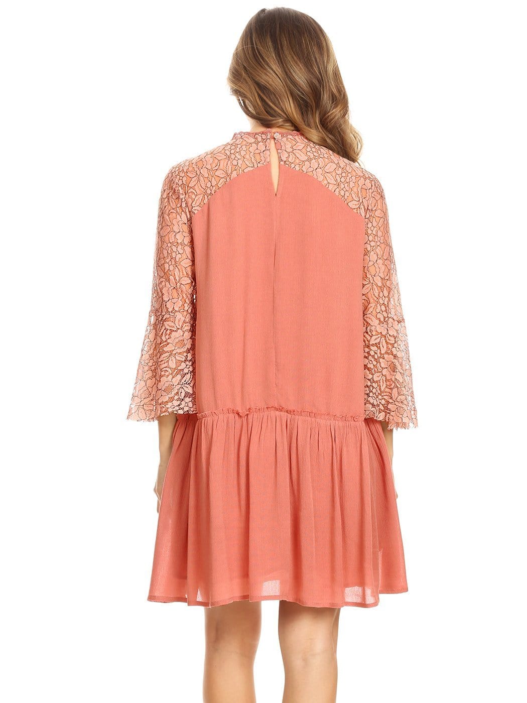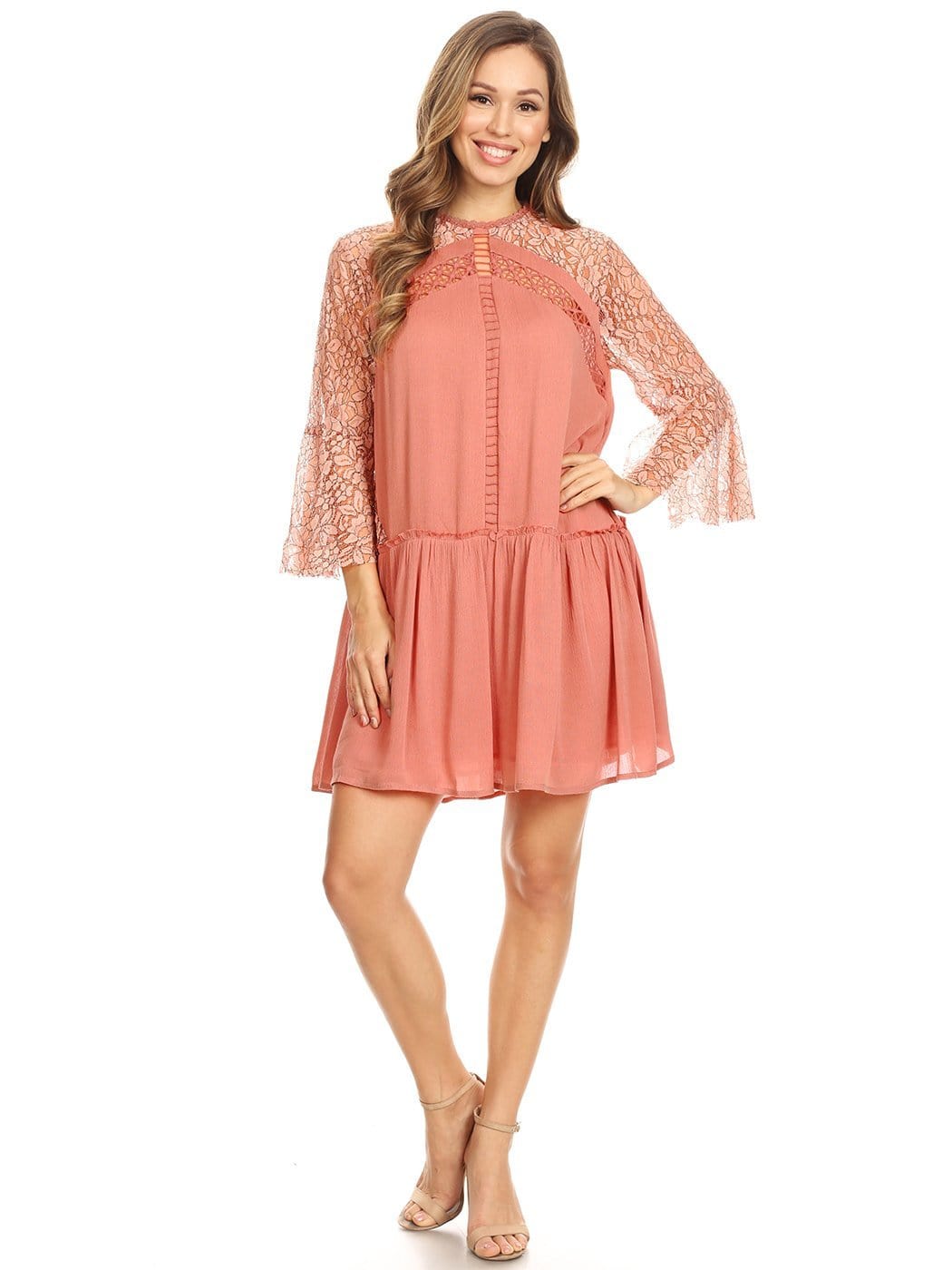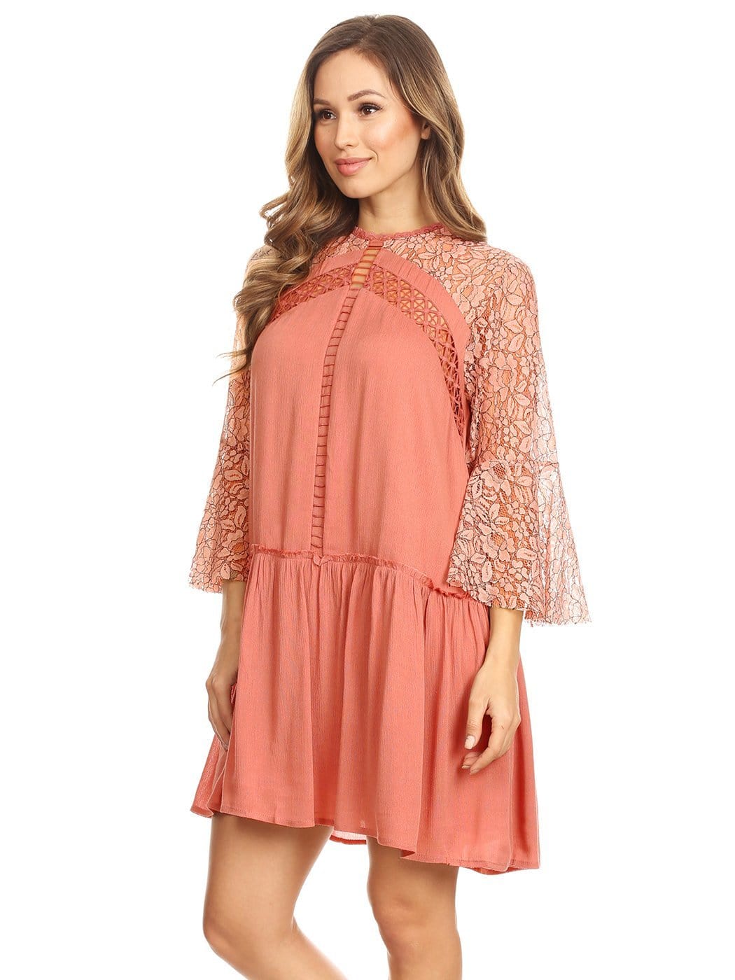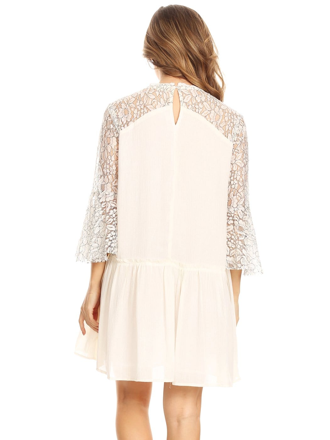 - STUNNING, DETAILED BELL SLEEVE MINI - This is a beautiful mini dress that consists of bell sleeves, lace, ruffles, a keyhole, and crochet details. Together all the details combine to make the perfect dress.