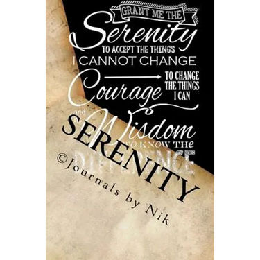 Serenity Prayer theme journal for writing. Serenity Prayer theme cover with a black and white interior and blank numbered pages, no lines. For writing, note taking and more. (c)Journals by Nik