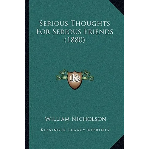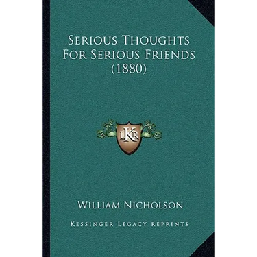 ""Serious Thoughts For Serious Friends"" is a book written by William Nicholson and published in 1880. The book is a collection of essays and reflections on various topics, including religion, morality, and social issues. Nicholson's writing style is thoughtful and introspective, and he provides insightful commentary on the challenges and opportunities facing individuals and society at large. The book is intended for a mature audience who are interested in engaging with complex ideas and exploring the deeper meaning of life. Overall, ""Serious Thoughts For Serious Friends"" is a thought-provoking and intellectually stimulating read that offers valuable insights into the human condition.This scarce antiquarian book is a facsimile reprint of the old original and may contain some imperfections such as library marks and notations. Because we believe this work is culturally important, we have made it available as part of our commitment for protecting, preserving, and promoting the world's literature in affordable, high quality, modern editions, that are true to their original work.