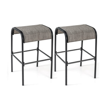 Set of 2/4 Patio Metal Bar Stools with Curved Fabric Seat-Set of 2