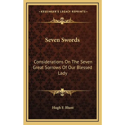 Seven Swords: Considerations On The Seven Great Sorrows Of Our Blessed Lady is a book written by Hugh F. Blunt that explores the seven sorrows of the Virgin Mary. The book is divided into seven chapters, each chapter focusing on one of the seven swords that pierced the heart of Mary. The swords are the prophecy of Simeon, the flight into Egypt, the loss of the child Jesus in the Temple, the meeting of Mary and Jesus on the way to Calvary, the crucifixion of Jesus, the taking down of the body of Jesus from the cross, and the burial of Jesus. Blunt's writing is both reflective and informative, providing readers with a deeper understanding of the significance of each sorrow and how they relate to Mary's role as the mother of Jesus. He draws on scripture, tradition, and the writings of saints to offer insights into how Mary's sorrow can help us to deepen our own faith and relationship with God. Overall, Seven Swords: Considerations On The Seven Great Sorrows Of Our Blessed Lady is a powerful and insightful book that offers readers a new perspective on the life and faith of the Virgin Mary. It is a must-read for anyone seeking to deepen their understanding of Mary's role in the life of Jesus and the Church.This scarce antiquarian book is a facsimile reprint of the old original and may contain some imperfections such as library marks and notations. Because we believe this work is culturally important, we have made it available as part of our commitment for protecting, preserving, and promoting the world's literature in affordable, high quality, modern editions, that are true to their original work.