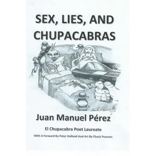 The grand proponent of wild, Texas chupacabras, the lover of fantastic, comic book characters, and the advocate of last century's monsters, all in the form of sometimes experimental poetry is at it again and there is no human, super or otherwise, on this tiny, blue Earth that can stop him. Is he a super-speculative genius trapped in what the unassuming think is a common poet? You hear him read live and you might start to wonder what a marvel he really is. Enjoy this very creative and speculative, poetry book that is not just a fast read but a kick in the pants of what poetry can also be like. In Sex, Lies, And Chupacabras, Juan Manuel Perez gives a powerful voice to several shadowy figures, namely one Speedy Gonzales, a love-sick werewolf, and the creature who Juan has championed for so many years, El Chupacabra. Named the Poet Laureate of the most misunderstood cucuy ever, Juan has gathered in this collection four multi-piece works, each varying in tone but they are all in their own way very powerful and fun.