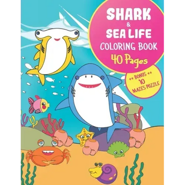 This coloring book is great gift for anyone who love sharks. This book contains cute sharks and sea animals cartoon with simple background. Fun with coloring and mazes game.