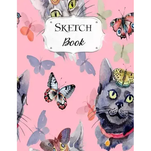 Sketch Book: Cat Sketchbook Scetchpad for Drawing or Doodling Notebook Pad for Creative Artists #7 Pink Butterfly - Paperback