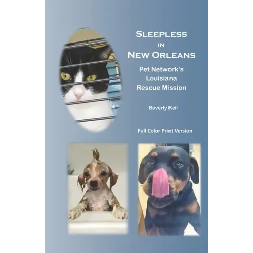 In 2017 the earth was angry as devastating hurricanes destroyed lives and property in Texas, Florida, Puerto Rico and Louisiana. Sleepless in New Orleans is the true story of volunteers who rescued and relocated over 100 dogs and cats affected by these natural disasters. Meet Nate aka "Chicken Dog" and Penny aka "the Sausage" along with beautiful feline Laura and senior cat Whisper and many of the other lucky ones. From Nevada to Louisiana and back, go along for the ride with the author and volunteer rescue workers who barely escape a hurricane themselves as they meet unexpected challenges to succeed in giving these innocent animals a second chance. An inside look at the entire rescue operation includes full-color photos documenting this mission of compassion and dedication. A black and white version is also available at a lower price.