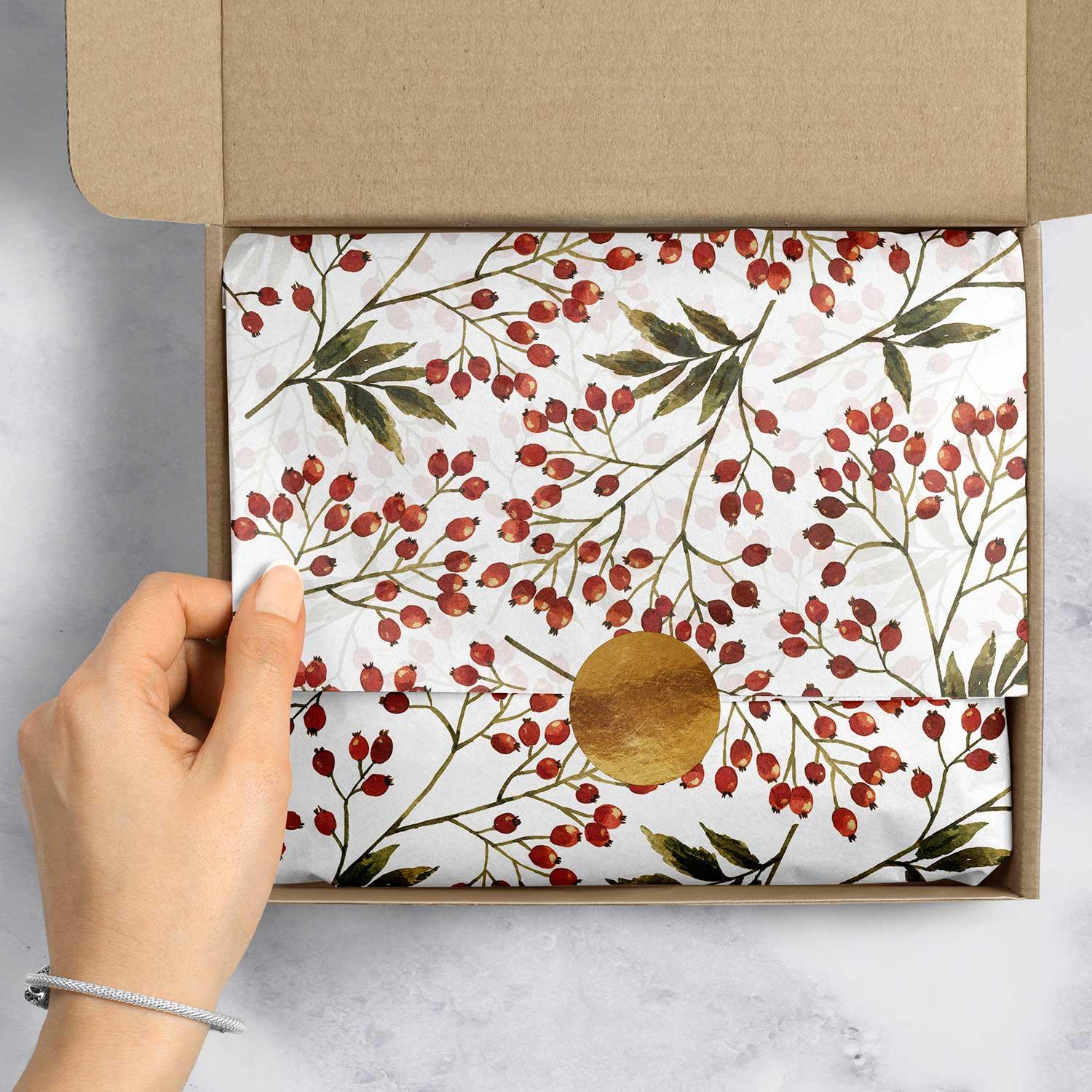 Snow Berries 20" x 30" Christmas Gift Tissue Paper by Present Paper