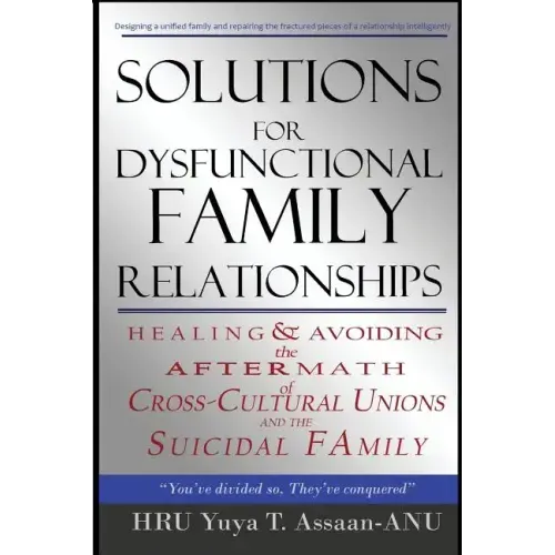With an alarming escalating frequency families are being devastatingly torn apart by the power struggle of conflicting ideas and intentions surrounding culture, politics, race relations, education, child-rearing, economics, and other concerns critical to the family structure.Are some relationships torn apart because of social, spiritual, religious, racial, and cultural viewpoints that are forced to coexist in the same place at the same time? Is the idea of cultural homogeneity within a household or long-term relationship based on a short sighted utopian flight of the imagination?This book uncovers the subversive, but aggressive, tactics often used by society/parents/children, in lopsided cross-cultural "unions", that work to disconnect families from their familial root and center. This work addresses the challenge of imparting healthy values to a current or former spouse while also fighting to safeguard the minds and spirits of your children.To this end, "Solutions for Dysfunctional Family Relationships" highlights the harmful effects of cultural mixing within the context of a long term intimate relationship or family. This work is a practical guidebook accompanied by engaging fictional narratives; complete with techniques and exercises that you can use straight away to bring order to the chaos of a split-camp relationship or family. "Solutions for Dysfunctional Family Relationships" deals with the solutions needed for dating, marital, and post marriage rebalancing as a result of disharmonious blending. Follow the lives of three couples and witness the genesis of their relationships and their well earned destinations.The author provides answers for those trying to maintain order and unity with their children, in-laws, and ex-spouses after a separation. Through the methods provided herein, you will learn how to choose your long-term partner more wisely and end the mayhem of cross-cultural mismatching in your relationship and home.