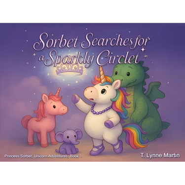 Meet Sorbet-a small, pink stuffed unicorn with a rainbow mane, a sparkly horn, and a heart full of adventure. She's not your ordinary princess who sits around in fancy gowns sipping tea. Sorbet is the brave leader of her stuffed animal friends, always ready to explore enchanted places, solve mysteries, and protect her cozy mountain home (especially from the three gigantic dogs who love to slobber on stuffies).