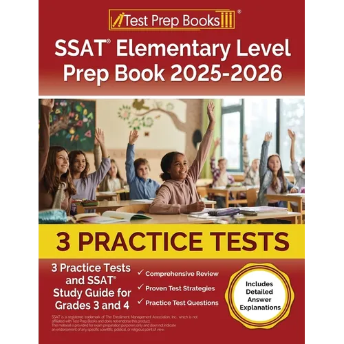 SSAT Elementary Level Prep Book 2025-2026: 3 Practice Tests and SSAT Study Guide for Grades 3 and 4 [Includes Detailed Answer Explanations] - Paperback