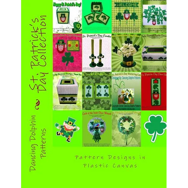 Celebrate St. Patrick's Day with this fun and festive collection of 14 plastic canvas patterns. Each pattern comes with full instructions and big, colorful graphs. Create Lucky Leprechaun Boutique, St. Patrick's Day Coasters, Door Greeters, Banners, Magnets, Candles, Vases, Tissue Boxes, Switch Plate Sets, Watering Cans, and Door Wreaths to bring the luck of the Irish into your home. Our patterns use 7-count plastic canvas mesh and medium or worsted weight yarns. Plastic canvas is perfect for creating 3-dimensional objects like tissue box covers, trinket boxes, handbags, magnets, and more. This collection is a great value at around $1 per pattern! For more plastic canvas patterns and designs, search Dancing Dolphin Patterns.