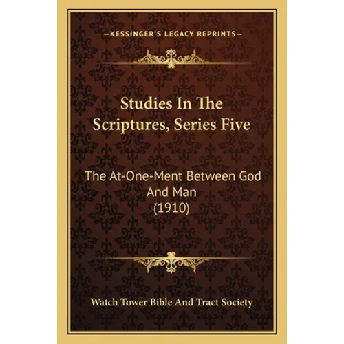 The book ""Studies In The Scriptures, Series Five: The At-One-Ment Between God And Man"" was written by the Watch Tower Bible And Tract Society and was published in 1910. The book is part of a series of religious texts that explore various aspects of Christian theology and doctrine. This particular volume focuses on the concept of atonement, or the reconciliation between God and humanity through the sacrifice of Jesus Christ. The book delves into the biblical origins of this idea, as well as its historical and theological significance. It also explores related topics such as sin, forgiveness, and salvation. The text is written in a clear and accessible style, making it suitable for both scholars and lay readers interested in Christian theology. Overall, ""Studies In The Scriptures, Series Five: The At-One-Ment Between God And Man"" is a comprehensive and insightful analysis of a fundamental Christian doctrine.This scarce antiquarian book is a facsimile reprint of the old original and may contain some imperfections such as library marks and notations. Because we believe this work is culturally important, we have made it available as part of our commitment for protecting, preserving, and promoting the world's literature in affordable, high quality, modern editions, that are true to their original work.