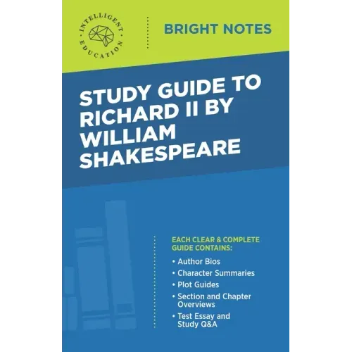 A comprehensive study guide offering in-depth explanation, essay, and test prep for William Shakespeare's Richard II, a political tragedy and historical play set during the Hundred Years' War. As a historical drama of 1595, Richard II contains imaginative descriptions and characterizations of real people in history and balances poetic language with harsh realism. Moreover, Richard II expresses themes of betrayal, leadership, and father-son relationships. This Bright Notes Study Guide explores the context and history of Shakespeare's classic work, helping students to thoroughly explore the reasons it has stood the literary test of time. Each Bright Notes Study Guide contains: - Introductions to the Author and the Work - Character Summaries - Plot Guides - Section and Chapter Overviews - Test Essay and Study Q&As The Bright Notes Study Guide series offers an in-depth tour of more than 275 classic works of literature, exploring characters, critical commentary, historical background, plots, and themes. This set of study guides encourages readers to dig deeper in their understanding by including essay questions and answers as well as topics for further research.