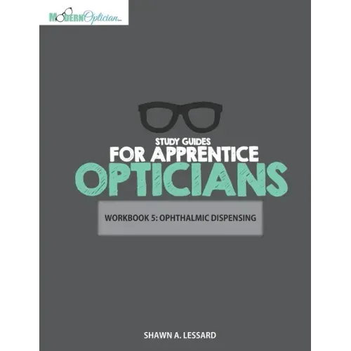A proven system that you've been using since you were a child Remember all the fun you used to have learning in grade-school? You didn't have to read dozens of paragraphs in one sitting, write loads of notes, or be responsible for your own learning plan. Most of the time, your teacher gave you fun activity sheets to assist your learning and make it enjoyable in the process.Workbooks for Apprentice Opticians brings the fun back into learning the way it used to be done in grade school. The student is given the opportunity to fulfill their self-guided learning by filling in the blanks, labeling diagrams and other exciting activities. All the while, testing their knowledge and learning new concepts along the way These workbooks are aligned to the ABO and NACOR national Opticianry testing standards of America and Canada. They serve as a phenomenal study aid for those preparing themselves for a career in Opticianry.WORKBOOK 1: OCULAR ANATOMY AND PHYSIOLOGY CONTENT: The Human Eye, The Cornea, The Conjunctiva, The Sclera, The Anterior Chamber, The Iris and Pupil, The Ciliary Body, The Crystalline Lens, The Vitreous Body, The Choroid, The Retina, The Optic Nerve, The Lacrimal Apparatus, The Tear Layer, The Bony Orbit, The Lids and Lashes, The Extra Ocular Muscles, The Aqueous Humor Pathway, The Visual Pathway, Strabismus Cataracts, Glaucoma, Corneal Pathologies, Retinal Pathologies, Other Ocular Pathologies, The Pathway of light, Optical Properties of the Eye, Normal Vision, Refractive Error, Myopia, Hyperopia, Astigmatism, Accommodation, Presbyopia, Correcting Refractive Error, Defocus Blur, Visual Acuity, Binocular Vision, Effects of Pathology on Vision Visit www.modernoptician.com for more information on the entire workbook series as well as other study guides and resources