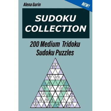 200 excellent puzzles for Intermediate Players at the level of Medium. All riddles have only 1 solution. 2 puzzles per page.The font size is correct, you will not have to strain your eyes when solving puzzles.High quality paper and print (all puzzles read well, easy to write with pen and pencil without worry of bleed-through). Tridoku puzzle consists of nine large triangles; the numbers 1 through 9 must be placed into the triangular cells of each large triangle. Also, the numbers 1 through 9 must be placed in the three legs of the inner shaded triangle and in the three legs of the outer shaded triangle. No two neighboring cells may contain the same number.