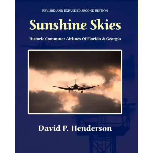 This book traces the history of over 70 small airlines that operated in Florida and Georgia from the 1910s through the 1990s. "Sunshine Skies: Historic Commuter Airlines of Florida and Georgia" offers the aviation enthusiast one of the most comprehensive glimpses of what was once one the most colorful and fascinating facets of the airline industry, the commuter. The book addresses in painstaking detail the carriers that transported passengers in some of the most classic, rare and historic aircraft to grace the skies of the Sunshine and Peach States during what was undeniably the independent commuter airline's Golden Age of the late 1960's to early 1980's.Sunshine Skies is complete with rare and invaluable photos of ramp, runway and in-flight operations. It also features exhaustive fleet listings, and hard to find timetable covers. Many airlines that have faded from memory and flown into extinction are here: PBA/Naples Airlines, Marco Island Airways, Shawnee Airlines, Mackey International, Air Florida, Air South, Florida Air Lines, Sun Airlines and over 70 others."Sunshine Skies: Historic Commuter Airlines of Florida and Georgia" is a must for the serious airline afficianado and should be in the library of every airplane lover who ever stopped whatever they were doing to catch a glimpse of a PBA DC-3 lumbering across the Florida Everglades, or to watch a Martin 404 with its brilliant red, orange and yellow Air South cheat lines descend with its exagerated nose-down attitude during finals into Brunswick, Georgia.