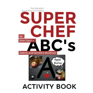 Teach children the ABC's with our full-size book loaded with activities. Teach your children to love the culinary arts through this unique ABC book. Each letter represents a cooking ingredient or item. Share the joy of baking with your family as you follow the "Super Chef" through the alphabet while learning new words. Your child now can experience the ABC'S in a new way and get a taste for learning by applying letters to food. A family that cooks together works better together, we believe. Kids enjoy a delicious and fun way to learn the ABC's with the "Super Chef" while expanding their knowledge.