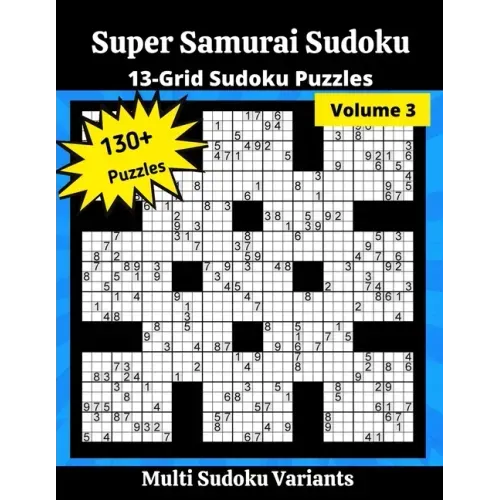 1690 Sudoku Puzzles combined in 130 Super Samurai Sudoku Puzzles with Solutions of all the puzzles. Why you'll love these Super Samurai Sudoku Puzzles in this book? More than 130 Super Samurai puzzles (or 1690 overlapping Sudoku puzzles) of Moderate difficulty, with the solution.Bonus Puzzles inside the book: Seven Clueless Sudoku Puzzles inside the book.
