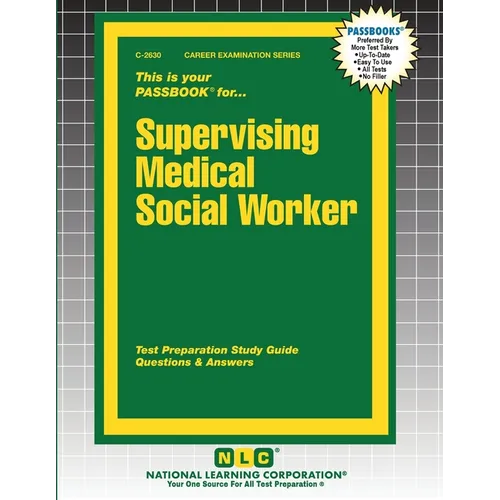The Supervising Medical Social Worker Passbook(R) prepares you for your test by allowing you to take practice exams in the subjects you need to study. It provides hundreds of questions and answers in the areas that will likely be covered on your upcoming exam, including but not limited to: Principles and practices of medical social work; Administration; Supervision; Understanding and interpreting written material; Preparing written material; Medical terminology; and more.