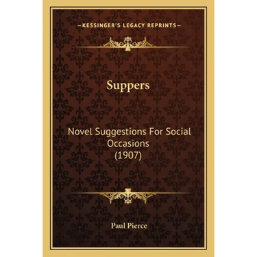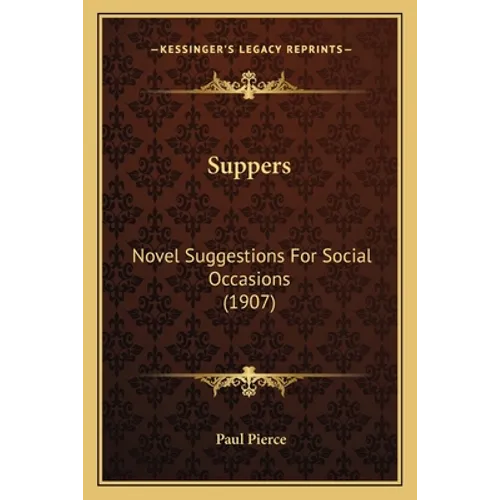 Suppers: Novel Suggestions For Social Occasions is a book written by Paul Pierce and published in 1907. The book is a guide to hosting and preparing suppers for social occasions, such as dinner parties, receptions, and other events. It contains a variety of recipes and menu suggestions, as well as advice on table settings, decorations, and entertainment.The book is divided into chapters that cover different types of suppers, including formal dinners, informal gatherings, and themed parties. Each chapter includes detailed instructions for preparing and presenting the food, along with tips for creating a welcoming and enjoyable atmosphere for guests.In addition to recipes and menu suggestions, Suppers also includes advice on etiquette and social customs, such as how to introduce guests and how to handle difficult situations. The book is written in a friendly and accessible style, making it a useful resource for anyone who wants to host a successful supper party.Overall, Suppers: Novel Suggestions For Social Occasions is a charming and informative guide to hosting suppers that are both delicious and memorable. It is a valuable resource for anyone who loves to entertain and wants to make their guests feel welcome and well-fed.This scarce antiquarian book is a facsimile reprint of the old original and may contain some imperfections such as library marks and notations. Because we believe this work is culturally important, we have made it available as part of our commitment for protecting, preserving, and promoting the world's literature in affordable, high quality, modern editions, that are true to their original work.