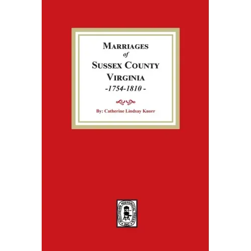 Sussex County was created in 1754 from Surry County. These marriages are arranged in alphabetical order by groom with an index to brides of approximately 1,500 marriages.