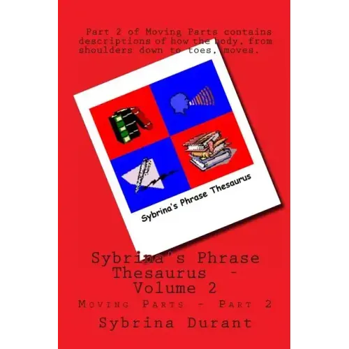 Sybrina's Phrase Thesaurus is a reference tool for anyone with a need to compose unique, descriptive phrases. It's a great tool for creative writers of any genre including students, people just learning English, people wanting to improve their communication skills, artistic professionals like photographers, videographers, models, actors and many others. Anyone who enjoys reading unique descriptive phrases will love Sybrina's Phrase Thesaurus because it is packed full of descriptive phrases on every subject ...from descriptions of the body, and how it looks, moves and interacts ...to word pictures describing all types of landscapes, waterscapes and skyscapes. The printed books are split into 4 volumes. This book, MOVING PARTS - Part 2 encompasses all of the lower body below the neck, describing how it moves and functions. Part 2 covers topics such as shrugging shoulders, reaching out to touch someone, heart beats, shivering, aching bones, stomach churning, hand gestures, posing, sitting, walking, running and much more. The Body In Motion section includes jumping, skipping, turning, sitting down and getting up, bending, stretching, squirming, falling and body in repose. The Daily Activities section includes creative ways to describe eating meals, driving cars, using a telephone, changing clothes and more. The Figures (or Expressions) Of Speech section includes ideas for writing smooth flowing conversations. Much more than just "He said, She said". Finally the Emotions section contains descriptions of emotions. Joy, anger, fear, sadness and many more. Just read the phrases and use what you want just as they're written or better yet, read all the suggested phrases in a particular category for inspiration to conquer your writer's block